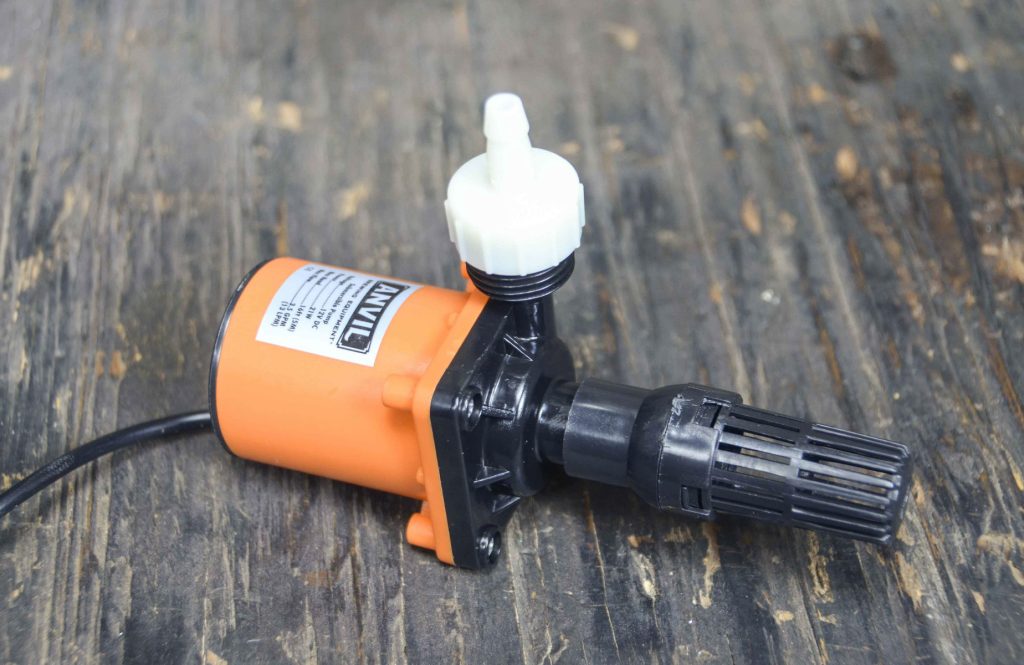 This compact submersible pump is perfect for cooling water from an ice bath to a glycol chiller. It features a barb that fits 1/4 to 5/16 inch tubing, and with a short length of 3/8-inch silicone tubing, you can easily step up from 5/16 tubing to 3/8 for your chiller.