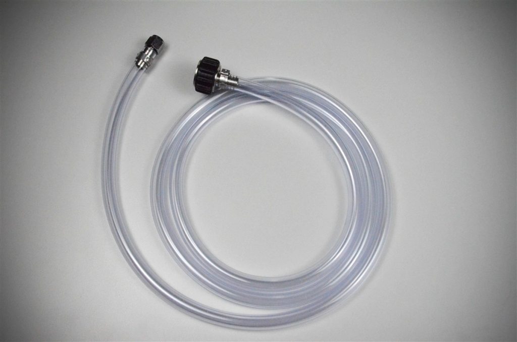 Replacement saturation hose for the QuickCarb™ beer carbonator. Includes 6 feet of hose with a 1/4” swivel nut installed on one end and a 1/2” QuickConnector™ nut installed on the other end.
